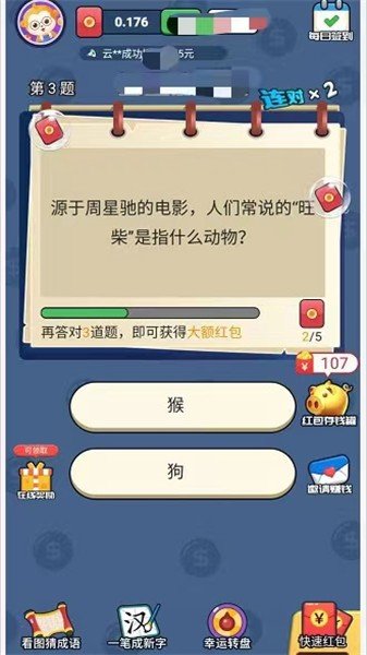 3、这款游戏没有年龄门槛,男女老少都能玩,用手机就能体验,不需要复杂的操作手法,通过答题闯关就能赚取收益!