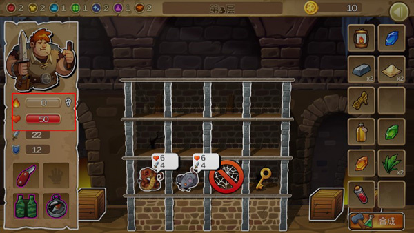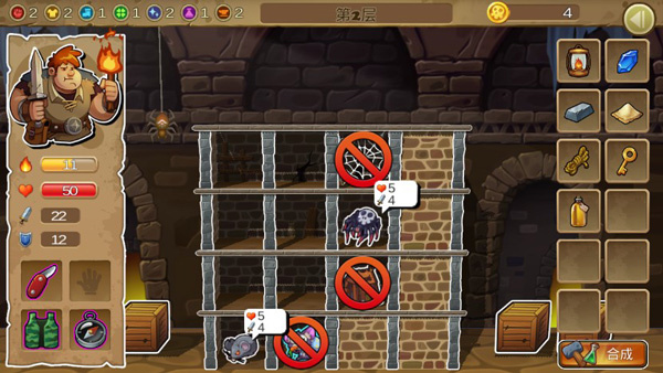 4、游戏里我们可能会面临血量耗尽或灯火熄灭的情况,这些都是相当危险的状况。玩家一旦出现这类情况,就可以用当前拥有的装备进行合成;当然,如果选择不合成,也可以直接退出地下层,但这样一来,这次冒险的地下层进度就不会被保存。