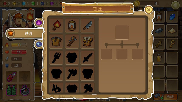 5、想要在游戏冒险中走得更长久,合成装备至关重要,我们得收集更多素材来合成装备,这样才能更好地辅助我们在冒险中持续前进。