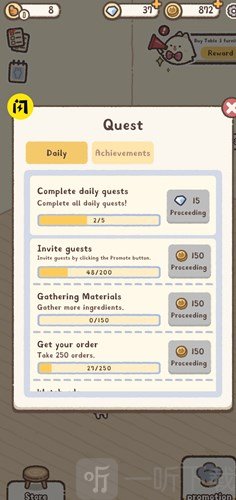 2游戏里设有任务系统,玩家能够通过完成任务挑战获取稀有原料,进而制作出各种口味的面包。
