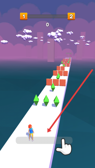 1通过手指在屏幕上的滑动来控制游戏角色启动奔跑,使其沿着预设的跑道持续前行;在此过程中,需要巧妙避开那些带有警示意味的红色方块障碍物,以此开启一段充满刺激的跑酷冒险之旅,并努力达成突破当前关卡的目标。