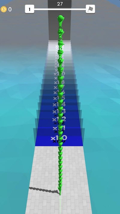 这款休闲闯关游戏的玩法相当有趣,开局时玩家操控的群体规模很小,随着不断向前移动,沿途遇到的零散个体都会被吸纳进来,让队伍逐渐壮大。不过需要注意的是,队伍人数越多,后续的操作挑战也会相应提升。
