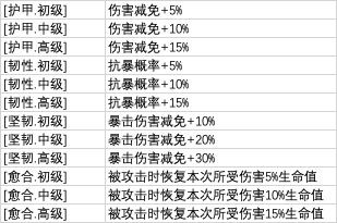 装备防御类特性: