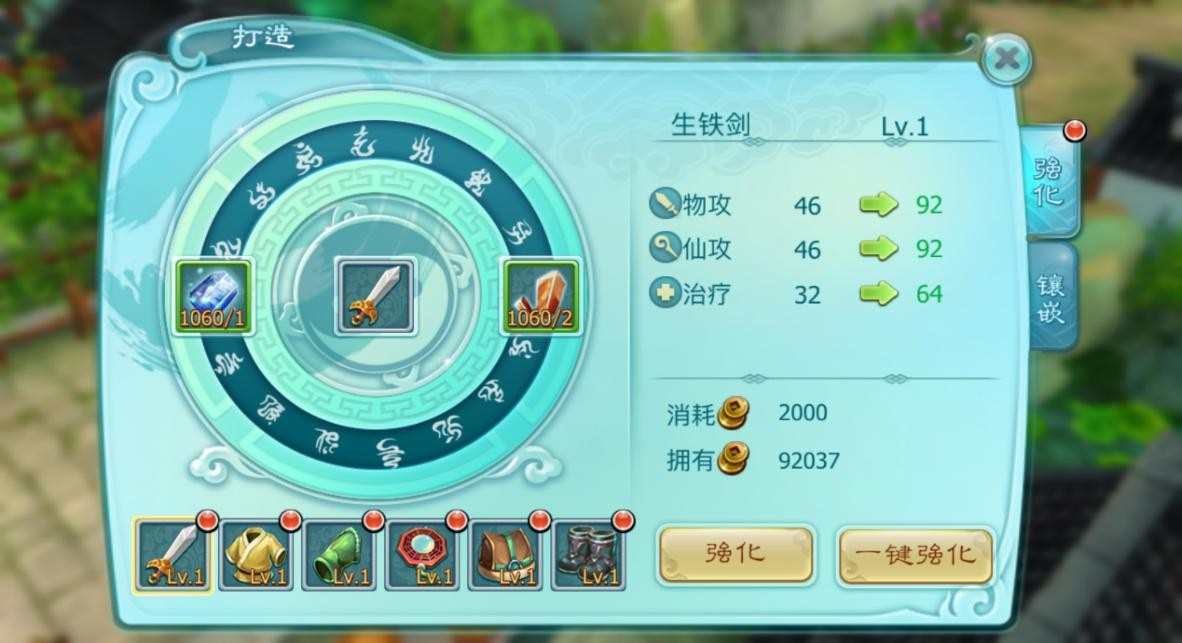 为角色穿戴装备,装备可强化、镶嵌宝石。
