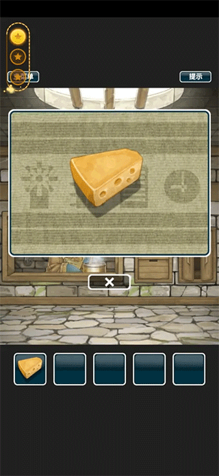 5把鱼递给鸟之后,能从鸟所在的桌面获取一块奶酪,接着回到之前的场景。