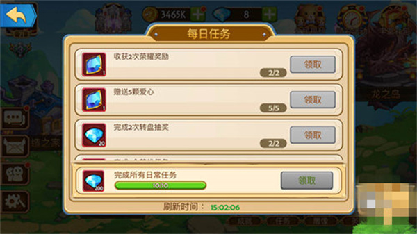 完成所有日常任务,奖励钻石*200