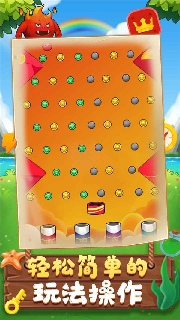 这是一款物理弹球类的解压游戏,玩家要让小球尽可能多次地弹跳以获取高分,同时尝试让它进入屏幕底部的罐子。要是能触发欢乐时刻,就能在限定时间内争取更高的分数。