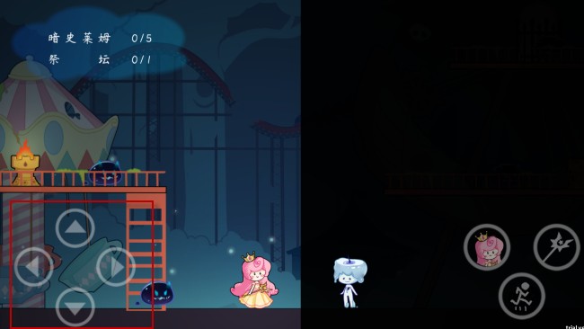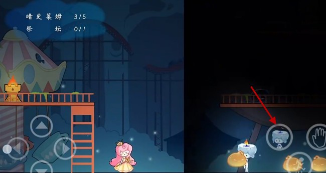 4、点击角色按键,即可切换角色,操控角色拾取被点亮的史莱姆。