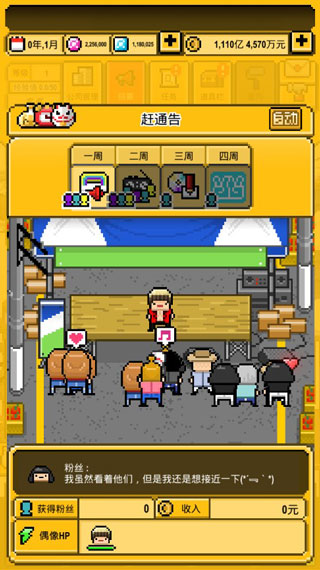 《偶像天团养成记》是一款颇具创新的游戏,其核心玩法为像素风格的偶像养成模拟。在游戏里,玩家将化身偶像经纪人,借助精心策划、专业培训与全面宣传等方式,助力偶像们逐步实现音乐梦想。该游戏具备较强的可操作性与策略性,玩家需在资源有限的情况下灵活规划运用,方能达成最优效果。