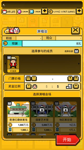 挑选演唱会的场地,确定参与演出的成员,设定对应的门票定价和奖金分成比例,以此来获取收益并吸引粉丝。