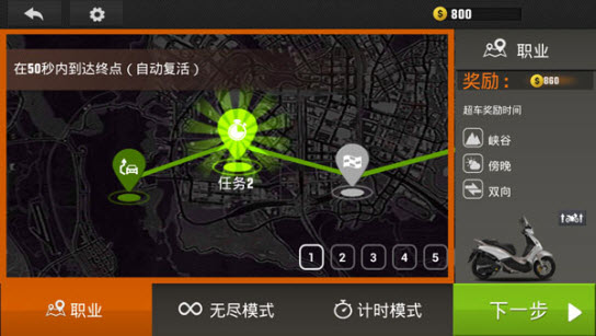 2、海量摩托等待玩家解锁购买,每一种都各具特色。