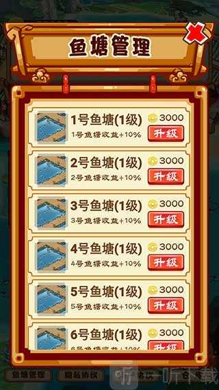 4. 点击左下角的鱼塘管理按钮鱼塘进行升级。