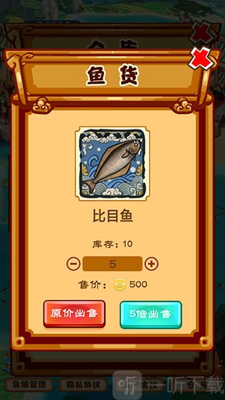 密切关注市场动态,在合适的时机将仓库中的鱼获出售,从而获取丰厚的资金回报。利用这些资金,你可以进一步扩大你的鱼塘规模,甚至解锁并引进更为珍稀的鱼种。通过不断地重复投放、悉心照料、适时捕捞和精明销售,你将一步步积累财富,体验从一个小池塘主到渔业巨擘的成长乐趣。