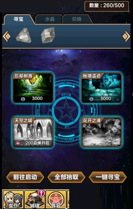 当然,也能选一键寻宝,这样会更方便些~点击水晶就能查看已经得到的水晶啦。