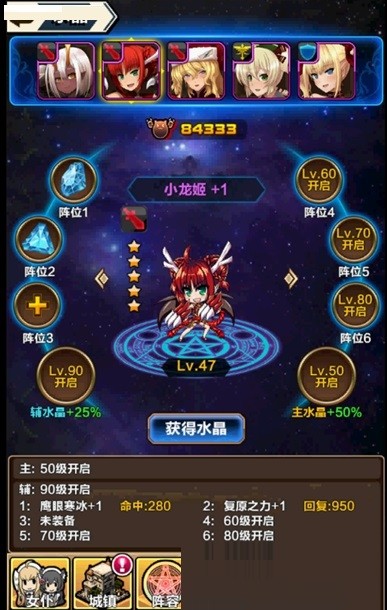 水晶也是可以升级的哦~把不需要的水晶当作素材来提升水晶等级,能让能力得到更显著的提升~操作方法是点击水晶,选中想要升级的那一颗后点击升级按钮,接着挑选用来升级的材料水晶,最后点击确定就能完成升级啦。这里要说明一下,不同颜色的水晶提供的经验值不同:灰色水晶是10经验值,绿色水晶20经验值,蓝色水晶50经验值。