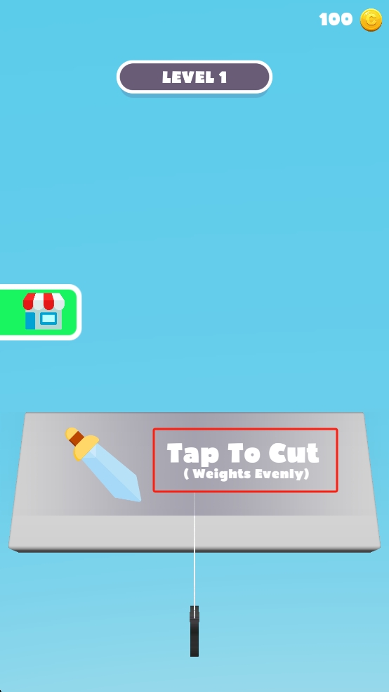 1、点击屏幕触发刀具,切断悬挂物体的绳索,开启Level1挑战;仔细观察切割区域,精准操作以顺利启动游戏。