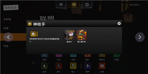 LOA搭配黑弓的组合:因为黑弓自身生存能力较弱,直接选它通常不太划算,一般是先选LOA之后再补选黑弓,这个组合能用到后期阶段,对抗战士英雄时效果突出,到了大后期可以把黑弓替换成NEC或者LICH。