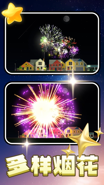 1丰富多样的烟花品类,让玩家能依据自身喜好与不同场景的需求,挑选适宜的烟花来进行燃放。