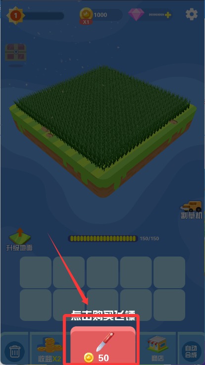 4达成目标后前往商店,使用金币提升武器攻击力、割草设备移动速度以及稻草的售卖价格,也能消耗钻石兑换特殊外观,从而让后续的割草环节效率更高。