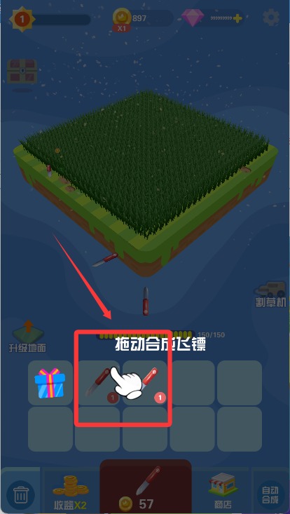 3、按住屏幕并滑动就可以发射飞镖割草了。