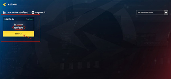 最后,在这个能看到当前在线玩家数量的服务器上点击【SELECT】按钮,就能顺利进入游戏了!