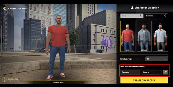 进入游戏后,会出现一个角色选择界面,玩家可以在这里选择角色的性别为男或女,同时设置的角色名称将作为玩家在游戏内的身份标识。