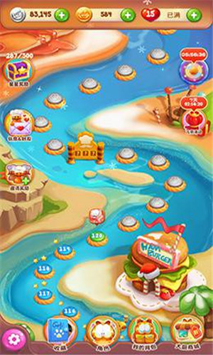 2、再加上加菲猫与小伙伴们的各类技能时不时前来助力,保证特效满屏、美食纷飞,那种爽快劲儿简直让人根本停不下来