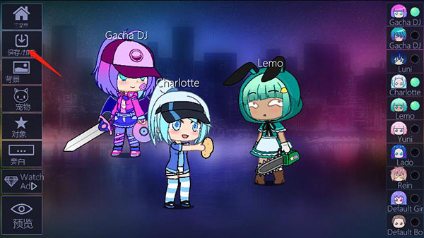 2、完成装扮后点击保存/加载选项;