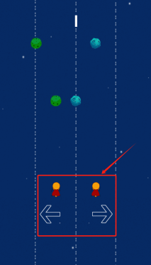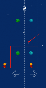 3通过左右方向键操控角色的位移,需要留意画面中间的红色方框区域,避免与从上方落下的彩色星球障碍物发生碰撞。