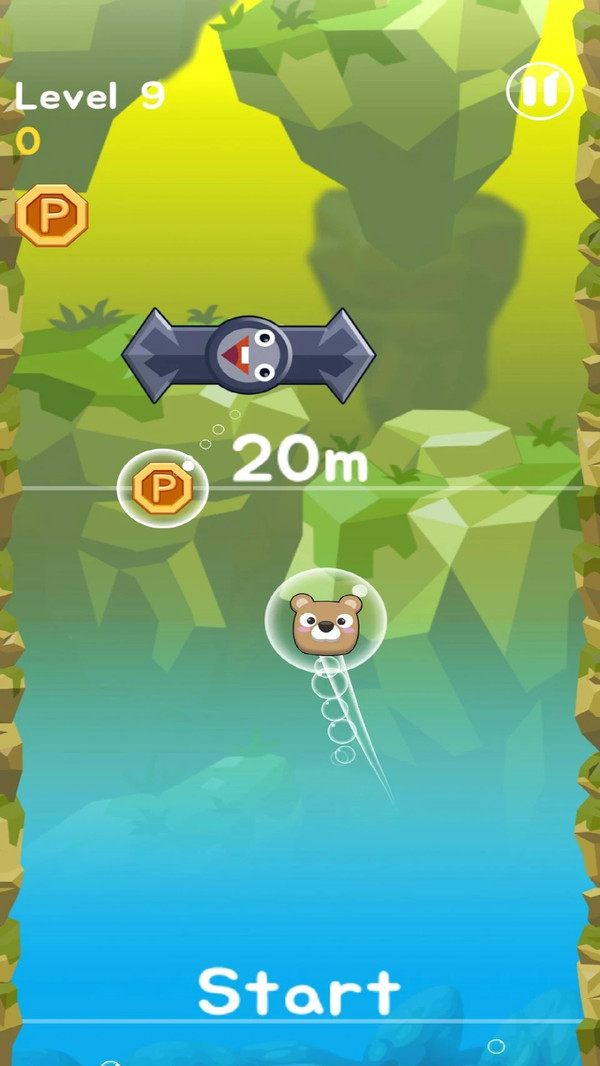 1在这个游戏里,你只需要操控可爱的动物气泡进行上下左右的移动,在巧妙躲避那些危险障碍物的过程中,尽可能多地收集沿途的金币就可以啦。