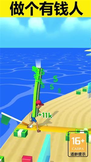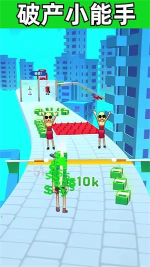 这是一款名为“大步向钱(运动理财)”的休闲益智游戏,它提供了丰富多样的玩法,操作方式是轻松简单的滑动,玩起来趣味十足。玩家需要在游戏中拾取沿途的金钱,收集硬币和道具,同时挑战各种障碍,以达到目标并获得高分,帮助主人公领取面前的一堆堆钱,让自己的金币数量足够多。喜欢这款游戏的玩家,快来体验吧!