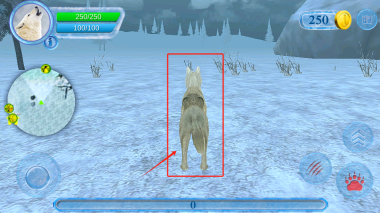 3、通过点击右下角的爪印按钮来操控狼的移动,左上角的显示区域可以查看血量与饥饿值,右上角则显示当前拥有的金币数量。