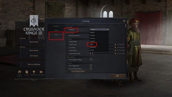 4找到菜单区域下方的设置入口,进入后选择游戏相关设置项,把语言选项调整为中文并确认保存,之后重新启动游戏就能完成设置。