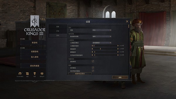 5、重新进入游戏后,界面就会显示为简体中文,我们可以对游戏的自动保存间隔时长、工具提示显示模式等各项设置进行调整。