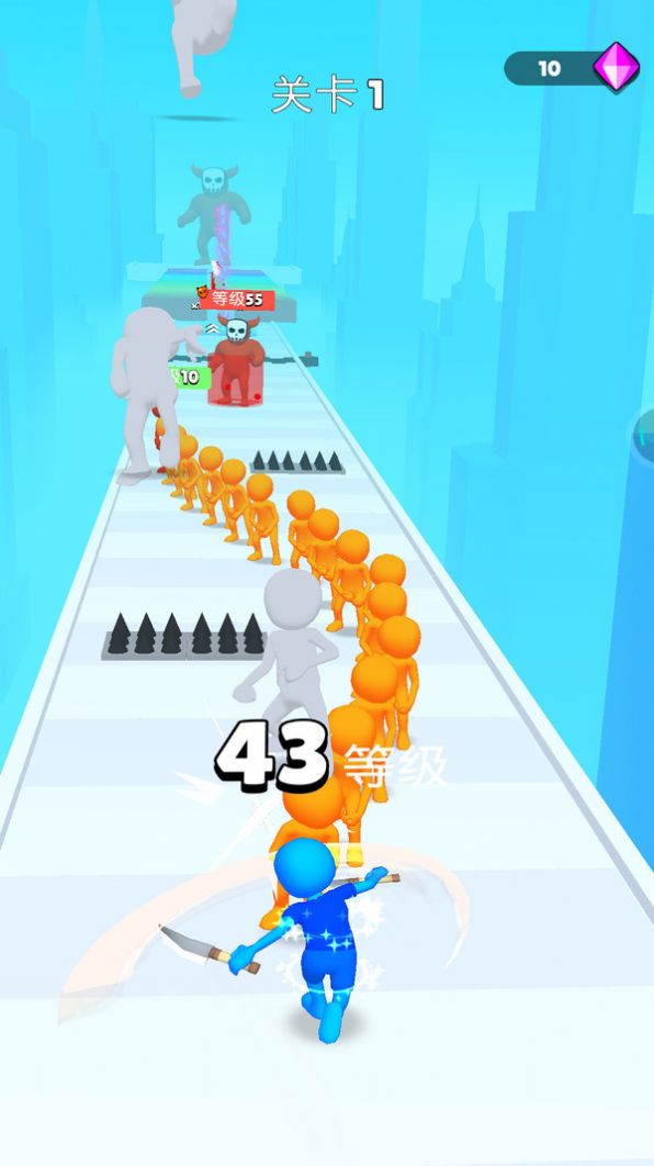 这是一款把跑酷冲刺和轻度战斗结合起来的休闲闯关游戏,玩家要在快速移动的赛道里控制角色越过各种障碍,靠灵活的移动和武器的切换来打倒挡路的敌人,感受那种“一击扫平全场”的畅爽战斗体验。