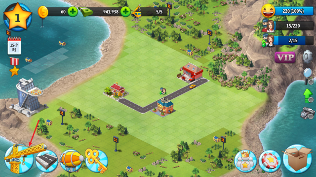 1、进入游戏后,我们点击左下角的按钮开始建造。