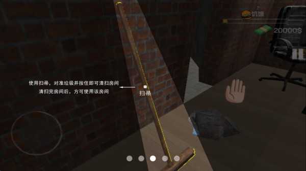 3、用扫帚工具时,对着垃圾所在区域长按就能清扫,得等房间打扫干净后才能正常使用。