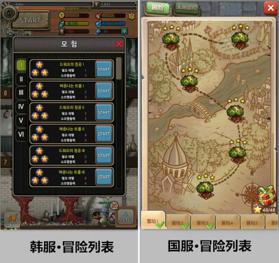 ,国服的英雄列表界面与英雄布置界面在设计上有着更显著的变化。从上图能够看到,英雄的各类信息以及布置状态都清晰明了,各个功能按钮也更为醒目,让玩家进行布置、解除、升级、强化、进化等操作时更加便捷。在卡牌形象、英雄星级以及种族信息等方面,同样有很大的改动。此外,英雄列表界面的属性栏还会显示英雄所处的楼层位置,这对于玩家调整整个塔层的兵力部署来说是极为关键的。和国服不同,韩服