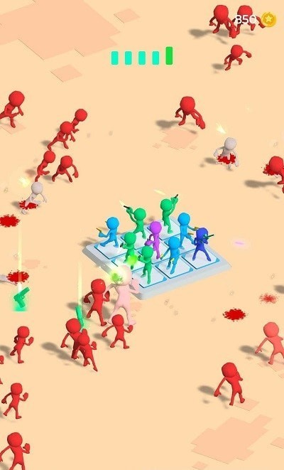 这款游戏将趣味塔防与战斗元素巧妙结合,玩家能解锁各类道具,还能使用威力强劲的武器。游戏采用放置玩法,玩家需在特定区域布置简笔画形象来抵御来袭的敌人。整体画面风格清新明快,核心玩法是通过合成不同颜色的小人来增强防御能力,因此在战斗中要优先针对移动速度较快的敌人采取行动。