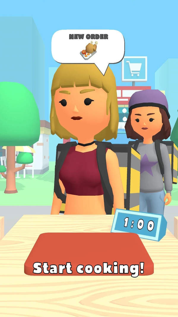 你得骑着电动车穿梭在城市里配送各类餐食订单,保证在限定时间内把每一单都按时送达。