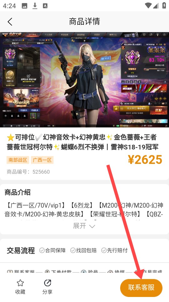 4、选好自己想要的游戏账号后,点击“联系客服”按钮就行。