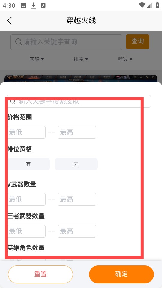 5、支持依据价格区间、排位资格、武器持有量、英雄角色拥有量等参数,对所需的游戏账号进行筛选。