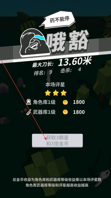 4、战斗结束后查看结算界面,点击【获取3颗星与3倍金币】领取奖励。