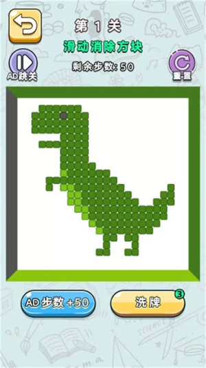 1玩家需要通过精准的屏幕滑动来操控图案移动,在过程中计算碰撞的角度与轨迹以达成高效消除,这一过程十分考验对空间的预判能力。