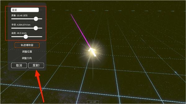 4完成位置方向的设定后,可对球体的尺寸、自转速率、质量等参数进行调整,待所有参数配置妥当,点击发射按钮即可。
