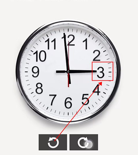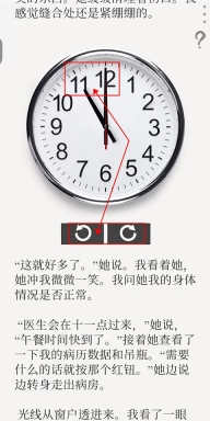 2医护人员告知,主治医师预计在上午十一点抵达病房。请将房间内的时钟时间调整为11点整——其中按钮1可操控分针按逆时针方向转动,按钮2则用于控制分针顺时针旋转。完成时间校准后,即可继续推进后续流程。