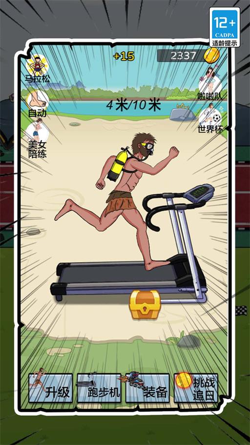 玩家需要通过快速点击屏幕的方式,让角色在运动器械上持续跑动进行体能训练,以此逐步增强角色的各项能力数值。
