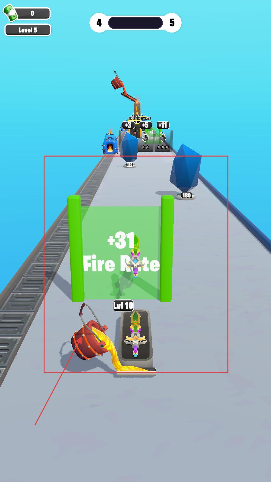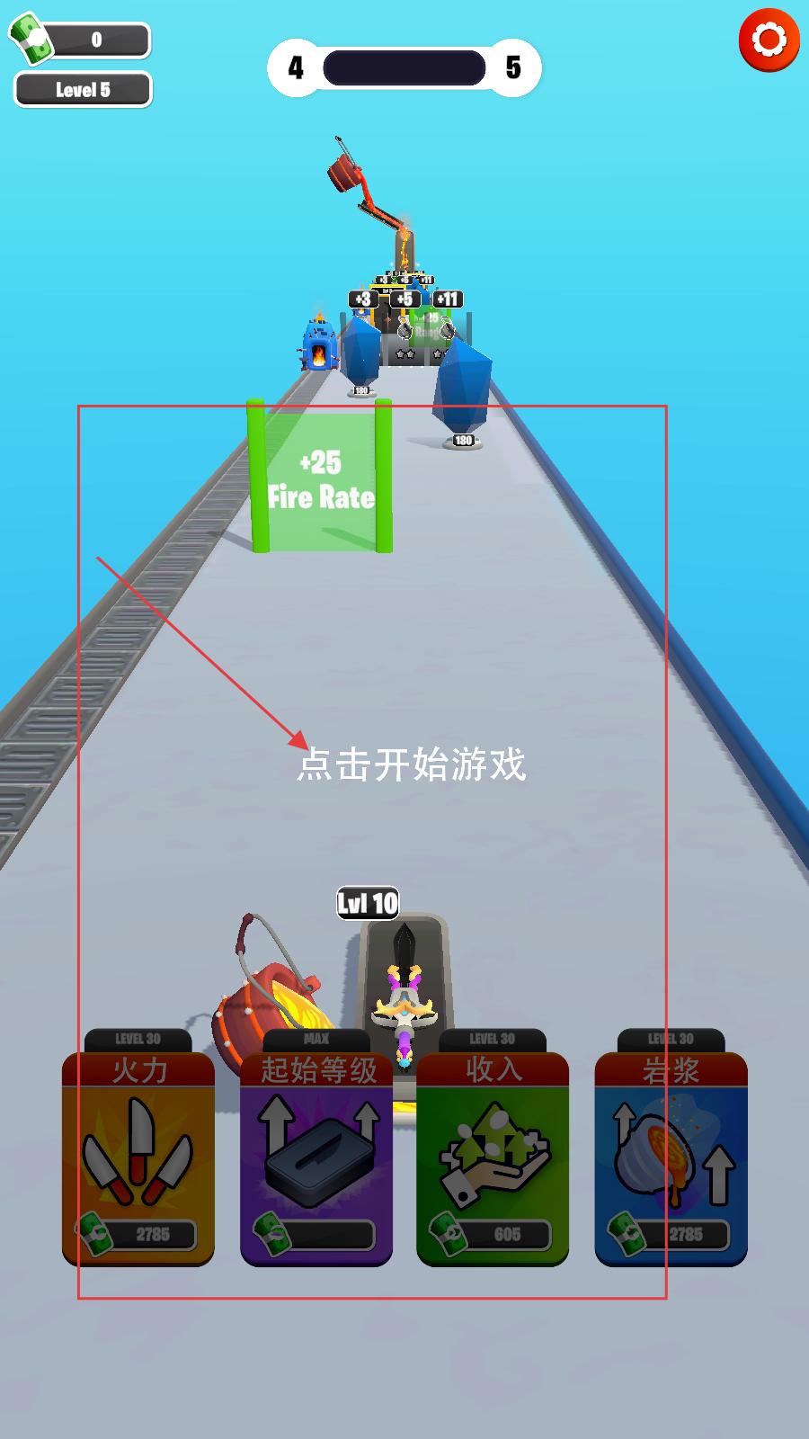 1进入游戏界面后,首先要触发游戏启动指令,随后控制装备沿着预设路径移动,途中获取可增强能力的物品,以此来提高攻击频率。