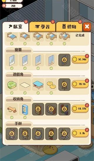 我们通过升级我们的房间属性和购买各种增加智力的道具,提升我们的孩子的能力