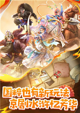 1,收集专属京剧风格武将,培养独特水浒英雄,搭配最优阵容,畅享指尖牌战乐趣,全新京剧风格震撼登场。